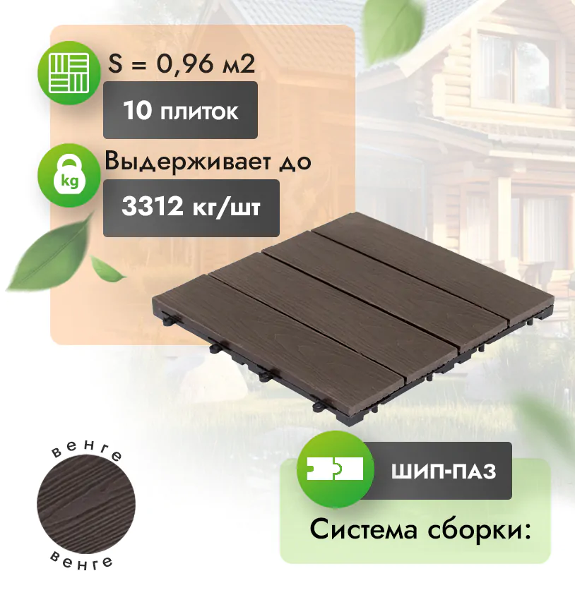 Современный садовый паркет из МПК – это лучший материал для облагораживания ландшафтов или придомовой территории. Он представляет собой модульные плитки из минерально-полимерного композита (МПК) с пластиковой подложкой и замковым креплением типа «шип-паз».